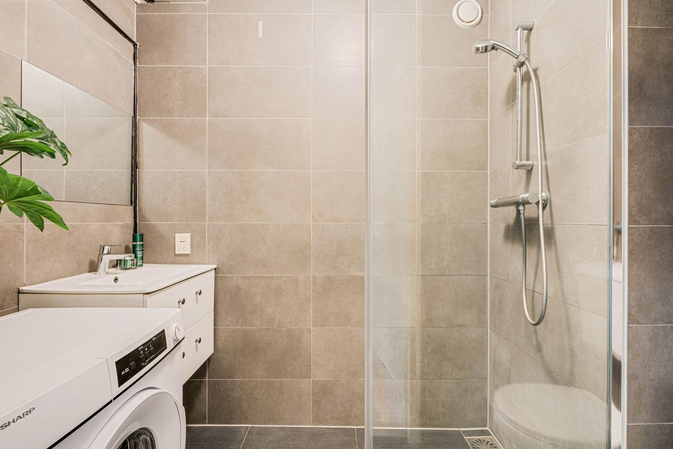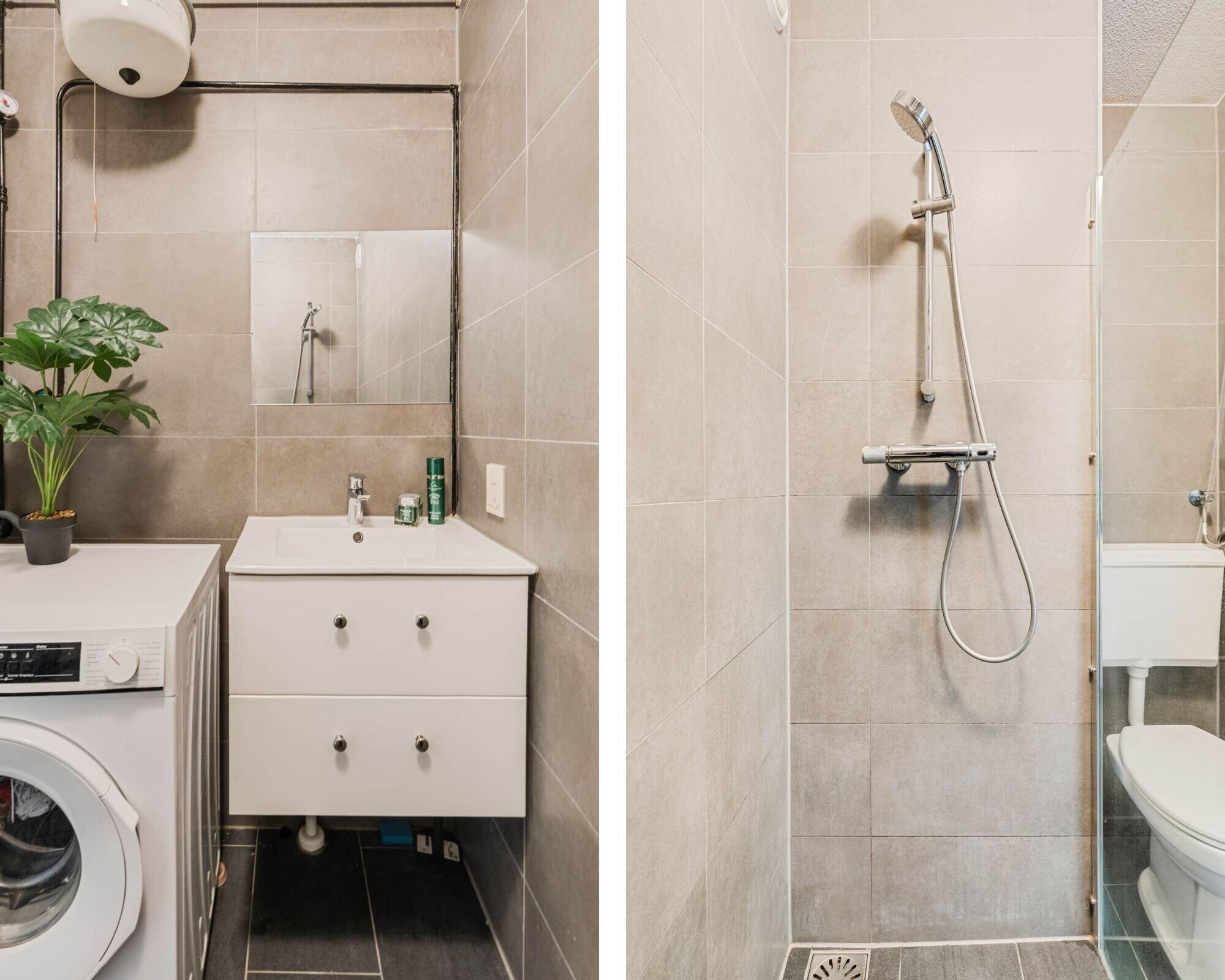 De nette badkamer is voorzien van een douche, toilet, wasmachine-aansluiting en een wastafelmeubel. Verder beschikt de woning over een praktische inpandige berging én is er een gemeenschappelijke berging op de begane grond van het complex. Als extra is er een gemeenschappelijk dakterras gelegen op het westen waar je gebruik van mag maken.